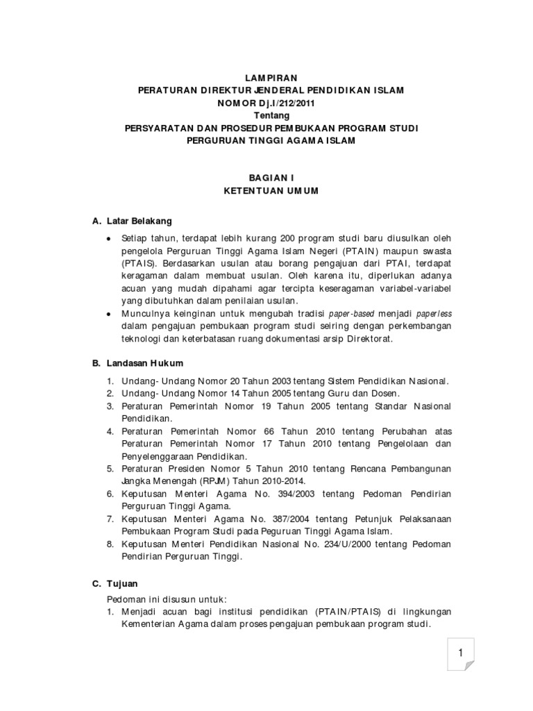 Undang-Undang Nomor 12 Tahun 2012 tentang Pendidikan Tinggi Download Peraturan Pemerintah Republik Indonesia Nomor 4 Tahun 2014 Tentang Penyelenggaraan Pendidikan Tinggi dan Pengelolaan Perguruan Tinggi Download Peraturan Menteri Agama Republik Indonesia Nomor 36 Tahun 2009 Tentang Penetapan. Instrumen Pembukaan Prodi Program Studi Program Diploma Tiga Pada PTN Non Bidang Kesehatan Baru. Instrumen Pembukaan Prodi Program Studi Program Diploma Tiga dalam rangka Pendirian PTS Non Bidang Kesehatan Baru.