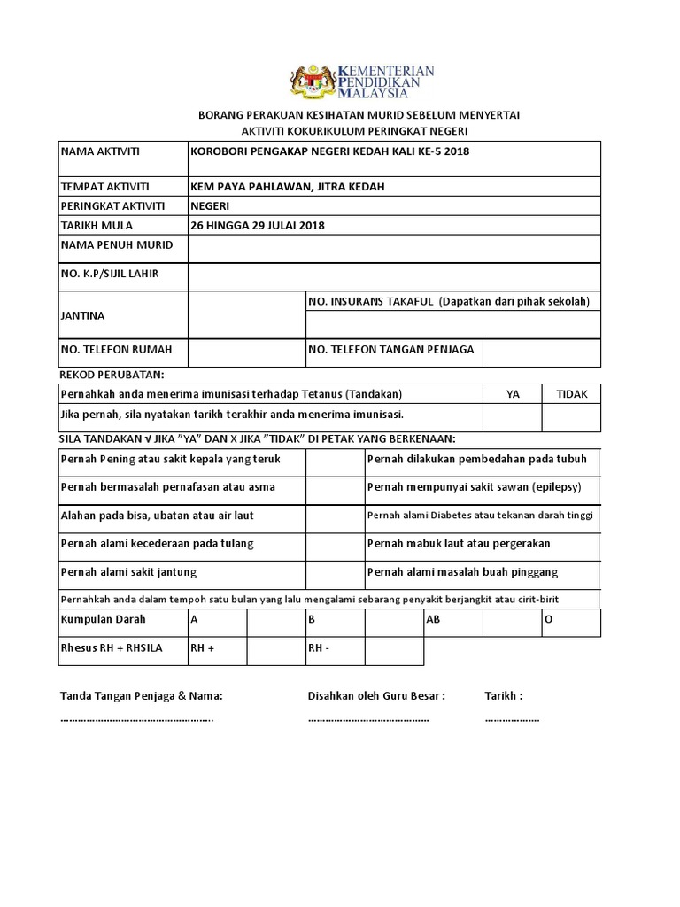 Borang Perakuan Kesihatan Murid