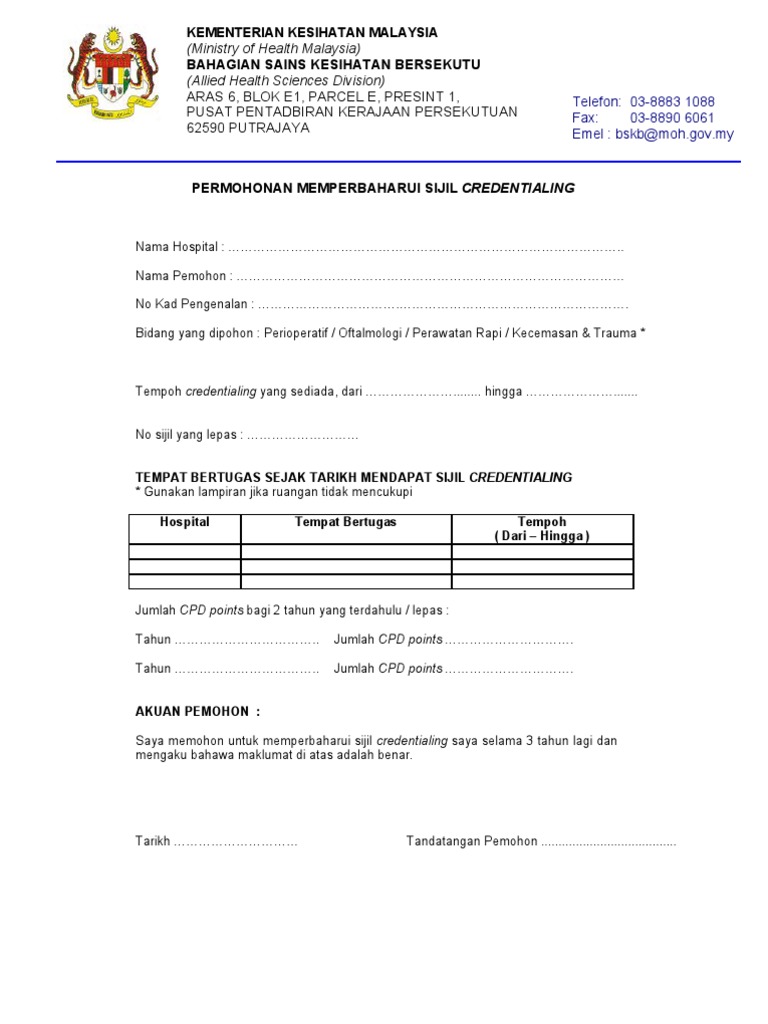 Sijil kelayakan adalah mengikut tahap Kelayakan Pendaftaran pemohon. Borang permohonan sijil transkrip akademik institut latihan kementerian kesihatan malaysia hilang rosak transkrip c. SYARAT-SYARAT DAN KRITERIA PERMOHONAN 21 Permohonan bagi Sijil Eksport Penjualan Bebas boleh dibuat di Jabatan Kesihatan Negeri JK N atau Pejabat Kesihatan Daerah P KD Pejabat Kesihatan Bahagian PKB Pejabat Kesihatan Kawasan PKK.