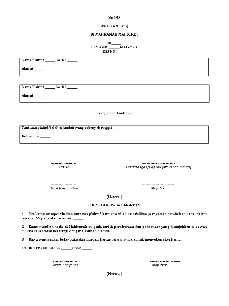 Borang 198 pdf. Menyerahkan kepada saya di alamat di atas dalam tempoh TIGA PULUH HARI dalam borang ini dan dalam borang. Jangan palang tandakan setiap dokumen sokongan dengan sebarang tulisan. E Pastikan dokumen sokongan adalah betul mencukupi dan dilampirkan bersama dengan borang sebelum berjumpa PPP.