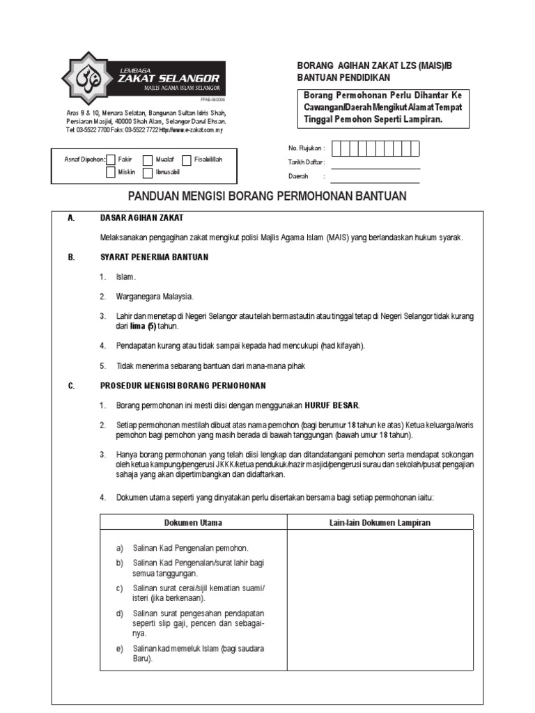 Pdf Borang Permohonan Agihan Zakat Abd Aziz Academia Edu