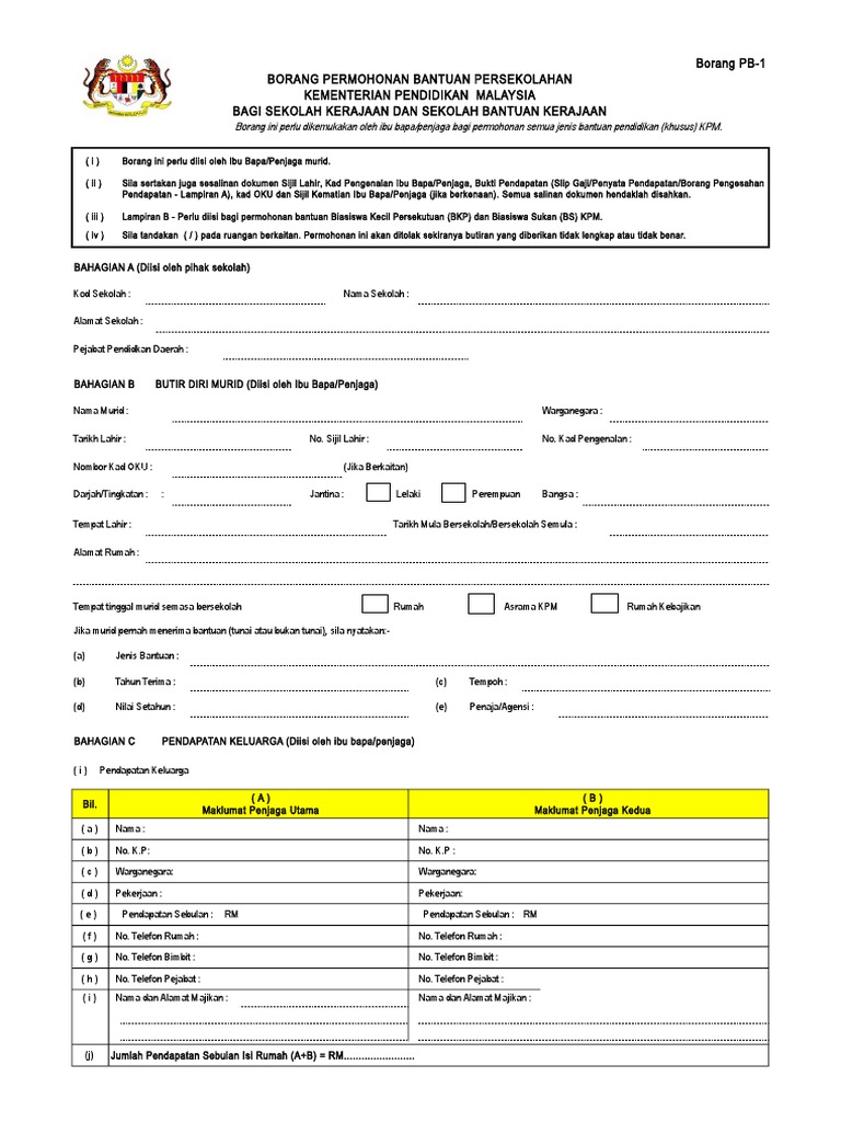 Penerima Bantuan Internet RM100 ini disasarkan kepada semua calon Sijil Pelajaran Malaysia SPM Sijil Tinggi Pelajaran Malaysia STPM dan Sijil Tinggi. Surat beranak anak asal dan salinan Kad pengenalan ibu bapa atau penjaga asal dan salinan. Borang PB-1 KEMENTERIAN PENDIDIKAN MALAYSIA BAGI SEKOLAH KERAJAAN DAN SEKOLAH BANTUAN KERAJAAN Borang ini perlu diisi oleh Ibu BapaPenjaga murid.