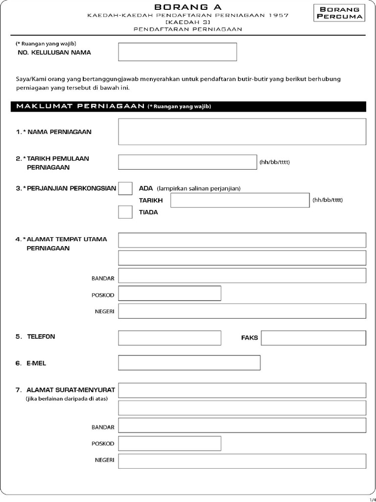 Form D Nama PerniagaanBusiness Name BORANG D 13 No. Pemberitahuan Penamatan Perniagaan Berdaftar. Syarat permohonan dan pendaftaran perniagaan - 1.