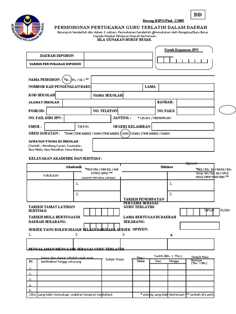 26012021 borang permohonan offline egtukar kpm Bahagian pertukaran yang bertugas bagi penempatan dan pertukaran guru adalah Sektor Penempatan dan Pertukaran Bahagian Pengurusan Sekolah Harian Kementerian Pendidikan Malaysia. The file extension - PDF and ranks to the Documents category. Bagi pemohon yang menjawat jawatan seperti berikut perlulah.