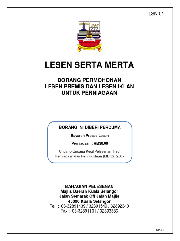 Borang Permohonan Lesen Pihak Berkuasa Tempatan Pbt Selangor. 12 Majlis Daerah Sabak Bernam. Iv Borang dan sebarang pertanyaan boleh diperolehi di kaunter Unit Tanah.