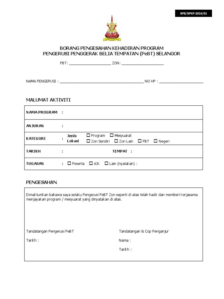 Borang Pengesahan Kehadiran Program 1 Pdf