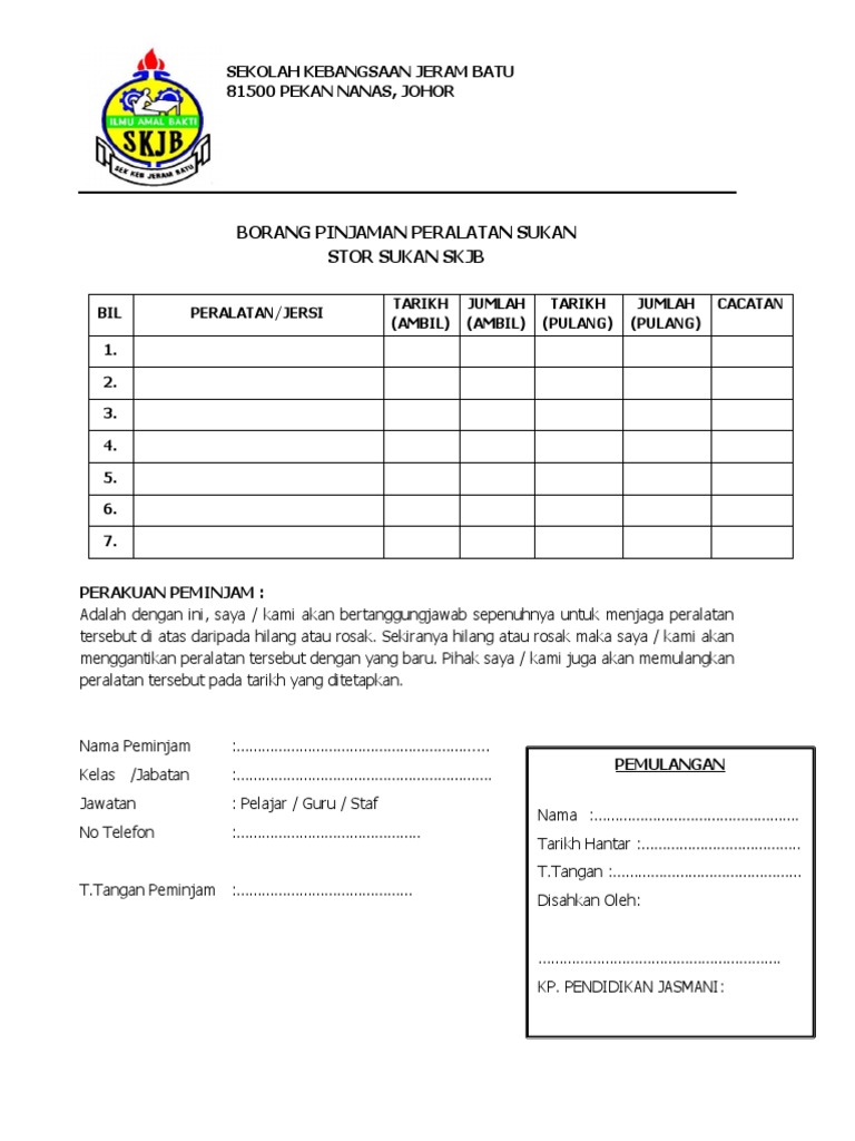 Borang Pinjaman Peralatan Sukan