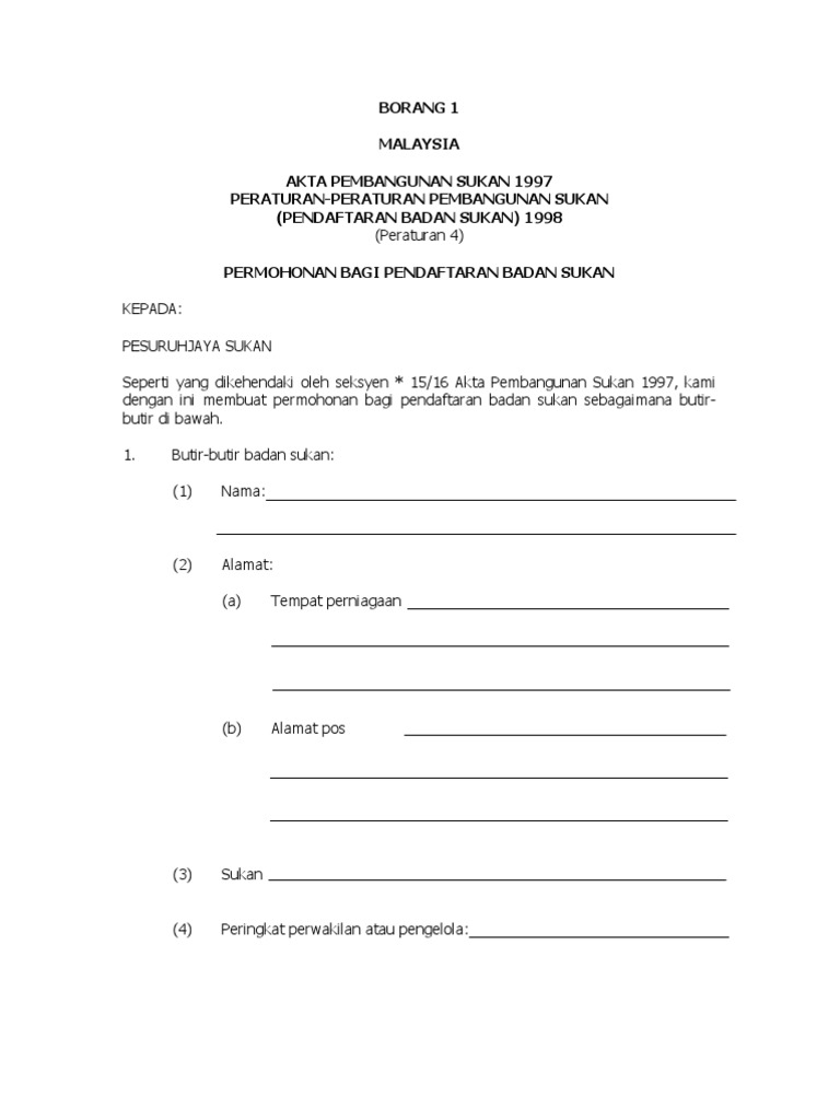 Pdf Senarai Semak Pendaftaran Badan Sukan Dzul Beron Academia Edu