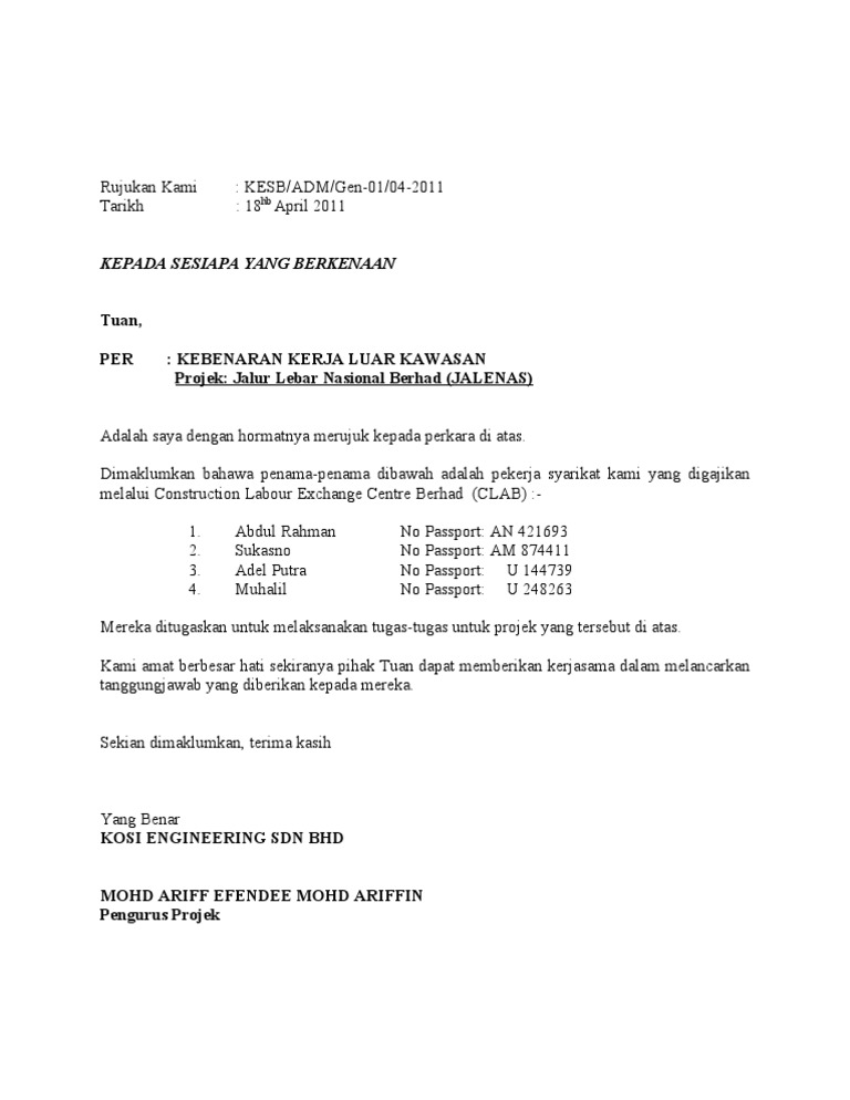 Contoh Surat Kebenaran Bekerja Sektor Awam Dan Swasta Semasa Pkp